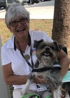 Connie volunteers with our rescue dog Buddy. They are nationally affiliated with Pet partners and locally with Suncoast Humane Society They visit the Englewood Hospital as well as Elsie Quirk Library, SW Florida College, Charlotte county library ,and Venice middle school. In a program called READ WITH ME. The children and young adults read to Buddy.
